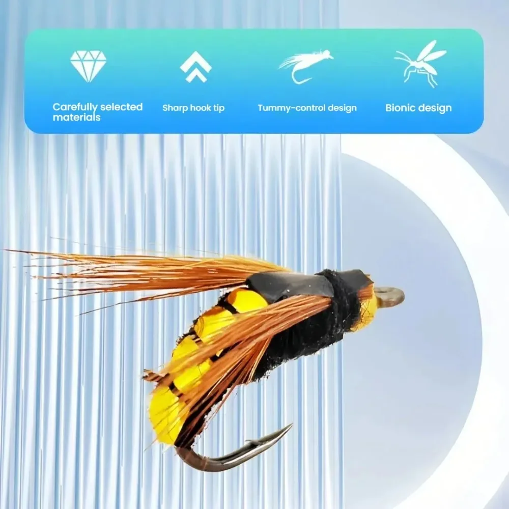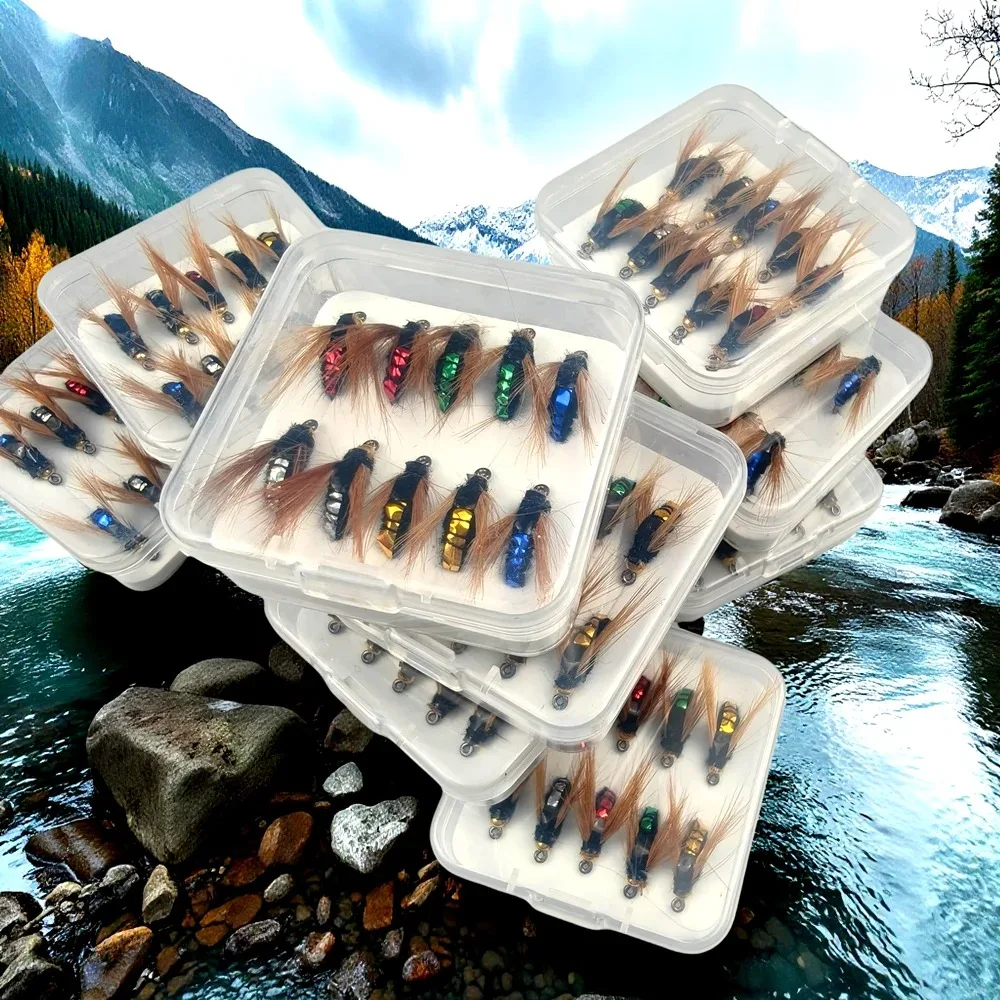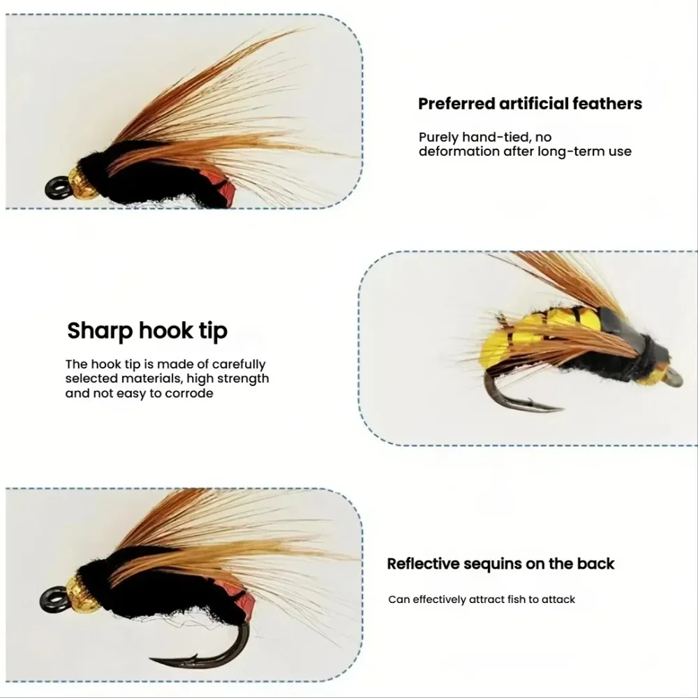 🐠Fly Fishing Lures Kit - The fly fishing bait is a powerful fishing tool with strong toughness and high brightness. hooks fly fishing kit box is hand banded by professionals and has a powerful barbed hook.
